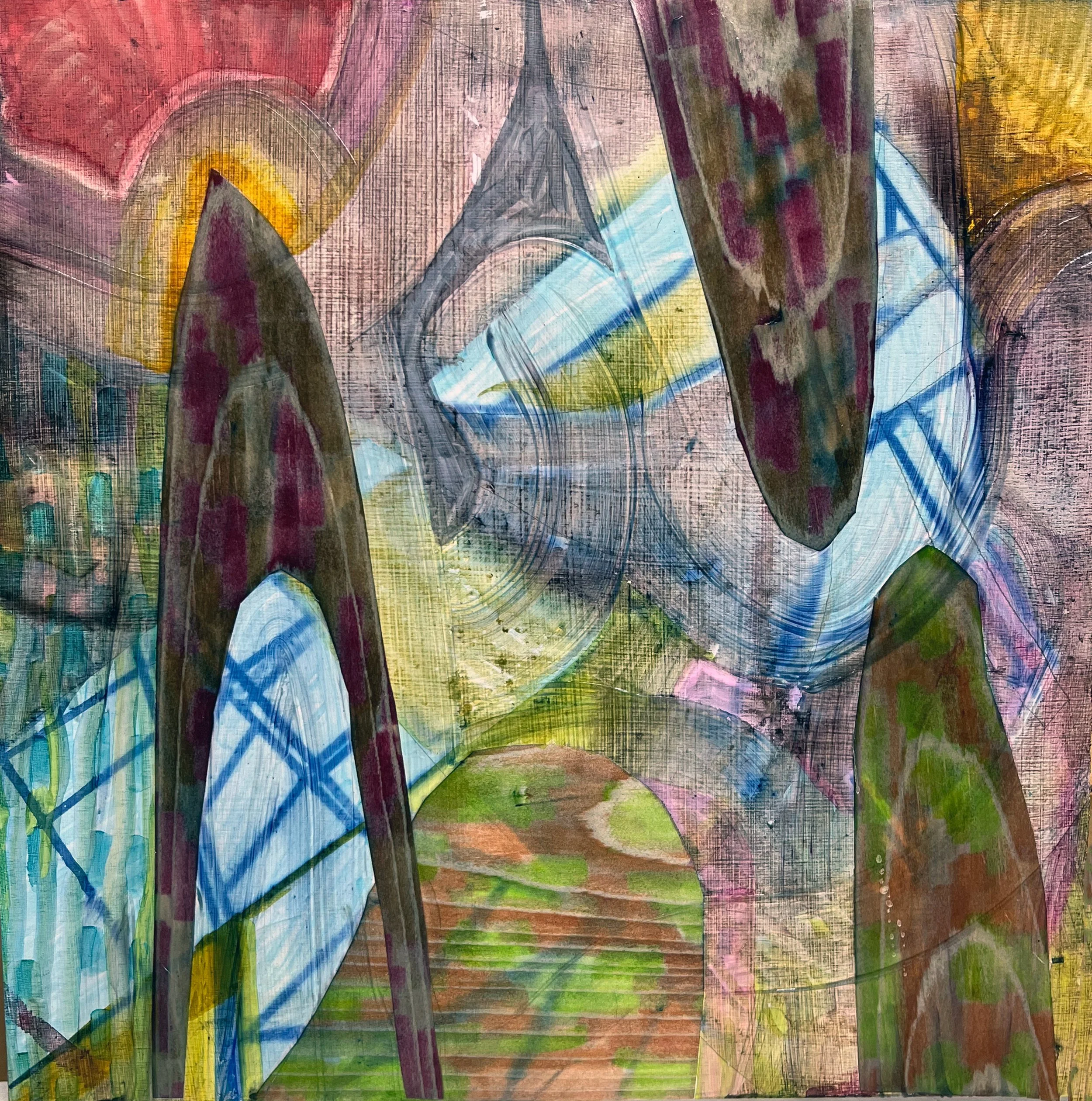 Gouache, ink, pine on birch panel